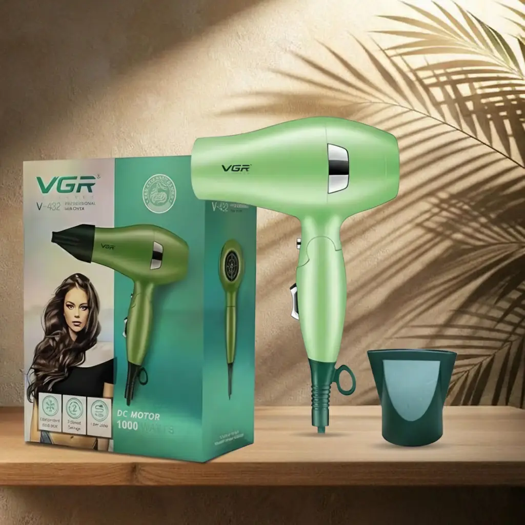 مشوارك أو سفرك مش هيعطلك! استشوار VGR-432 ده هو الرفيق المثالي اللي هيتصغر ويتحط في الشنطة، وهينشف شعرك بسرعة وقوة في أي مكان.
